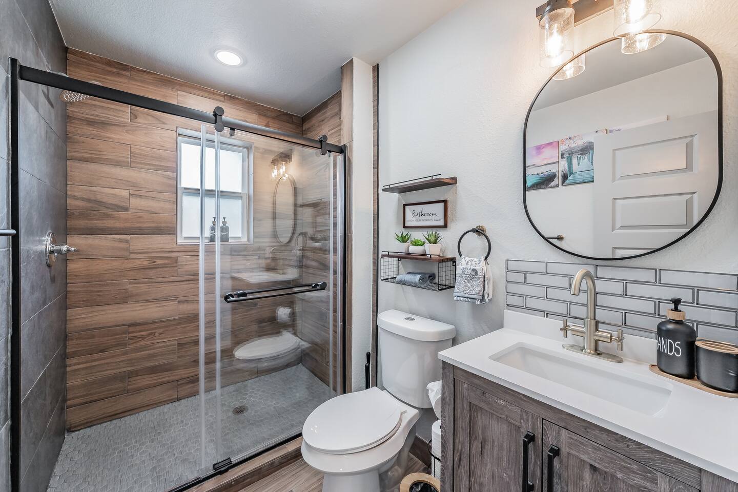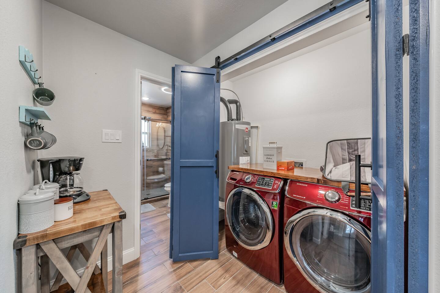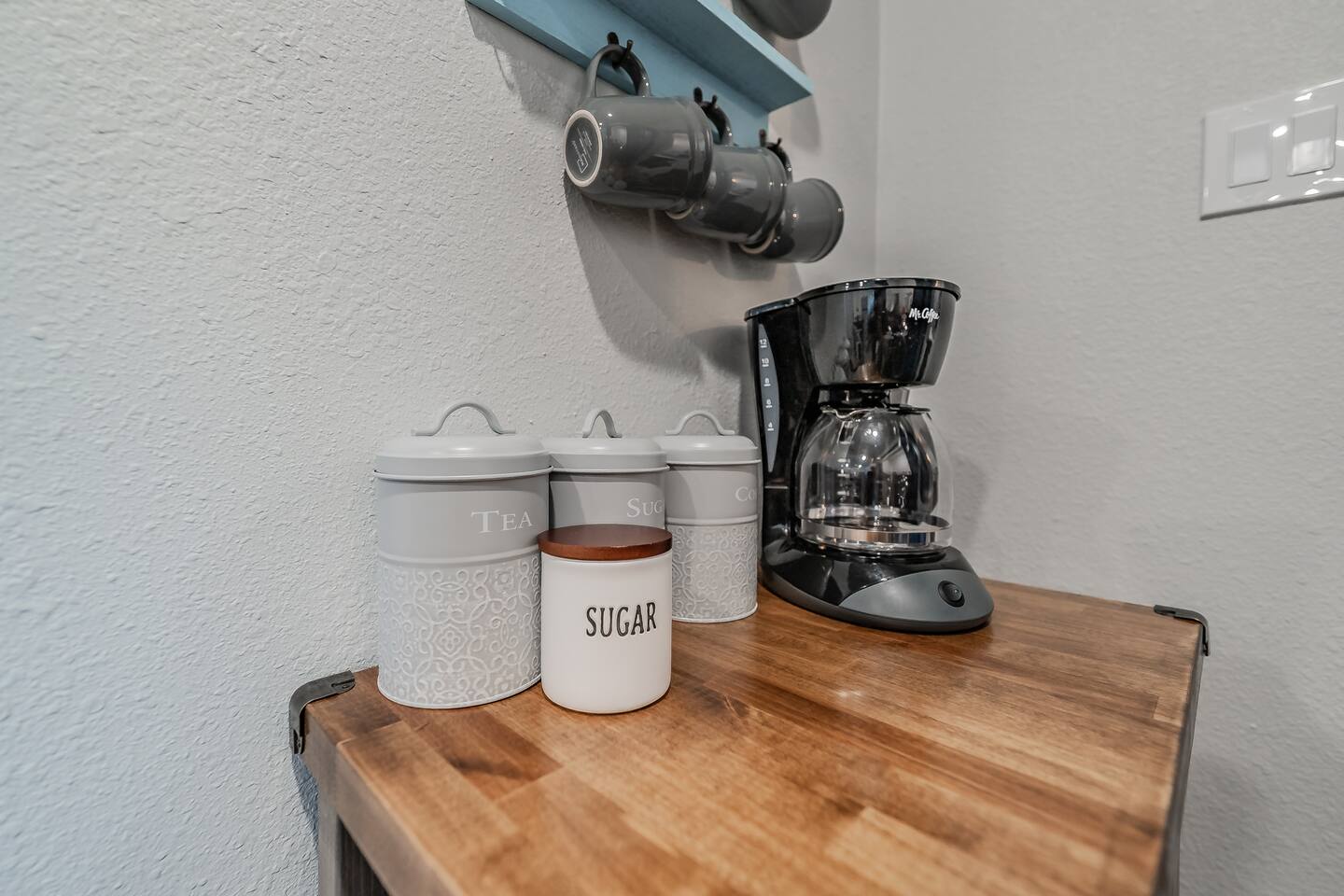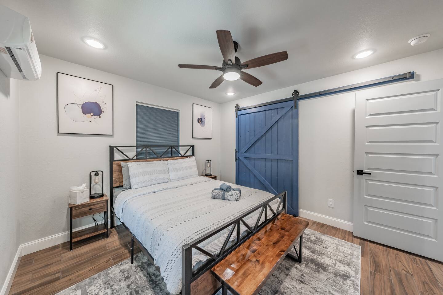 The guest house has everything you need for a comfortable stay. The bedroom includes a queen-size bed with ample closet space and a smart TV. The living room has a large smart TV. Extra single bed available upon request. The open kitchen space is equipped with all the essentials you need for your stay including a fridge, microwave, an electric stovetop and a coffee maker. Yes, we do include the coffee and sugar! Set your laptop up on the large dining table and connect to our fast wifi. The bathroom includes a walk in shower with sliding glass doors. Washer and dryer is included with your stay. Enjoy the views of the backyard with your own private patio. High speed internet included!