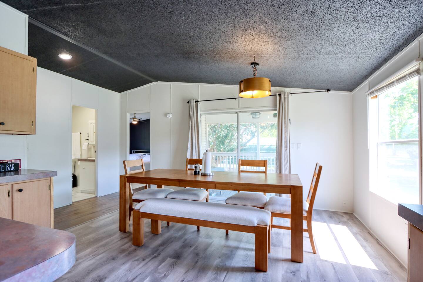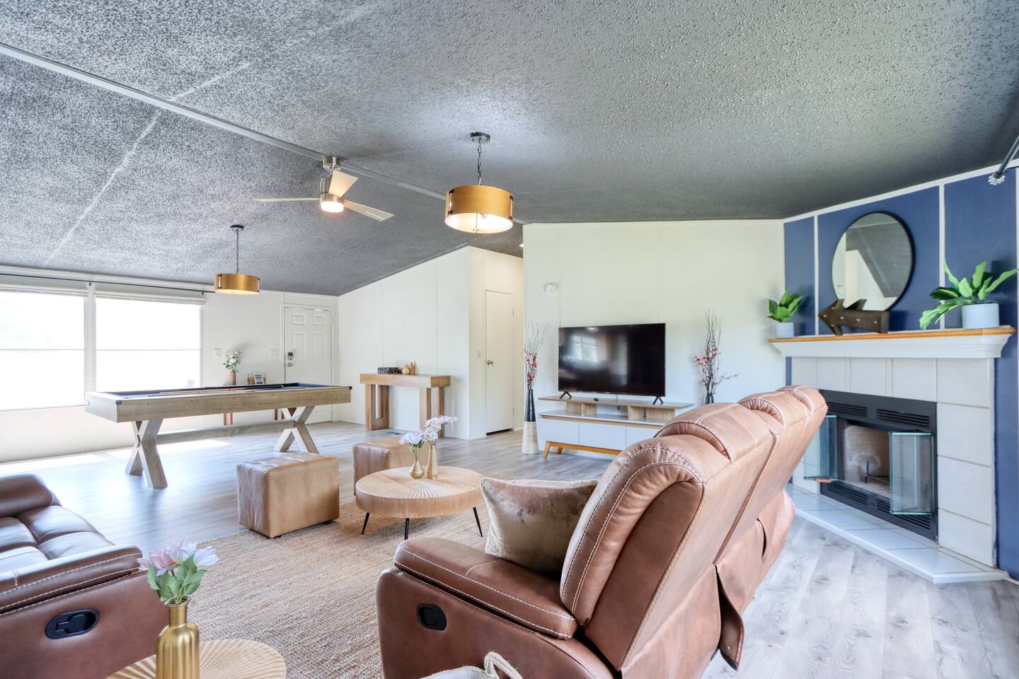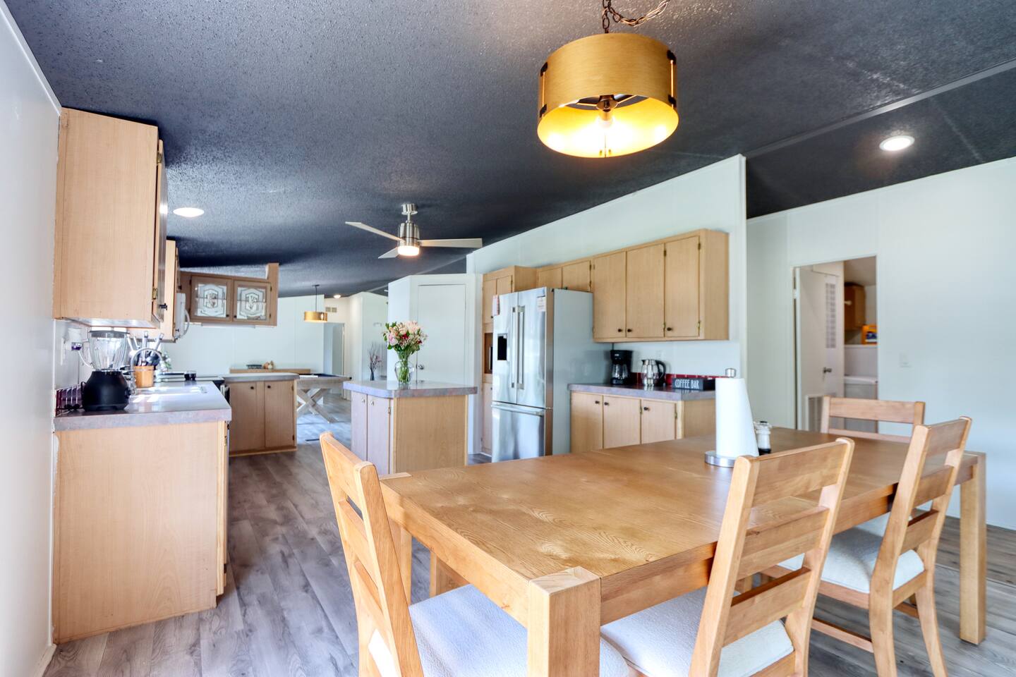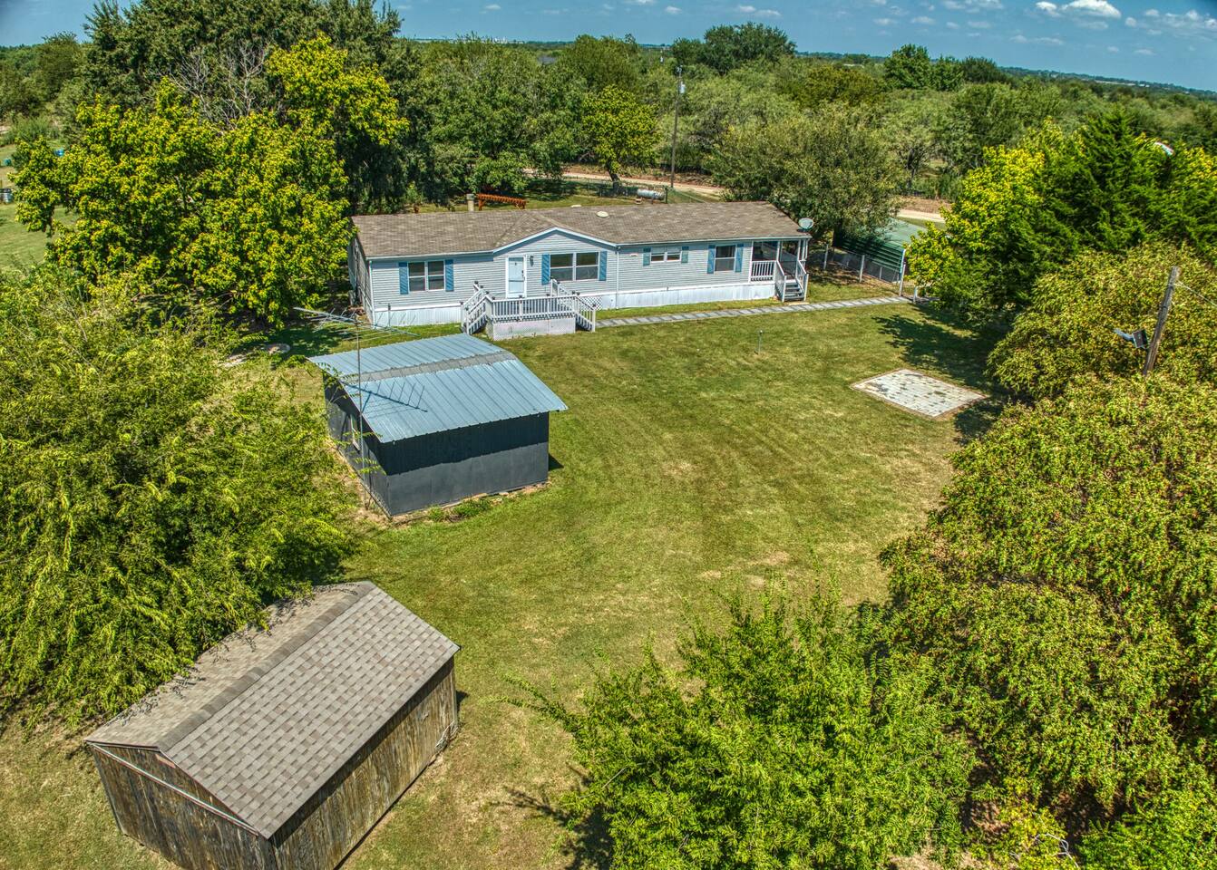 🏡 Inside the Home 4 Bedrooms, 2 Bathrooms Master Suite: King bed, walk-in closet, soaking tub, walk-in shower Attached Room: 2 full beds (privacy curtain divider from master) Bedroom 3: Queen bed + walk-in closet Bedroom 4: Queen bed + walk-in closet 2 full bathrooms with walk-in showers Warm & inviting living room (fireplace inoperable) Pool table for entertainment Fully stocked kitchen with cookware, dishware, and utensils Dedicated coffee bar for your morning routine Dining room with large table seating up to 6 🌿 Outdoor Features Spacious 1-acre lot with room to roam and play Comfy deck with outdoor seating Wood-burning firepit with chairs for evening gatherings Propane grill for BBQ nights Large outdoor space perfect for family fun and stargazing Covered parking for 2 vehicles Tornado shelter for safety and peace of mind 🌾 Surroundings & Location Quiet, tranquil setting with nearby farm animals (chickens, roosters, etc.) Local wildlife sightings (deer, wild boar) 15 minutes to Corsicana 45 minutes to Waxahachie 1 hour to Dallas 15 minutes from Richland Chamber Reservoir