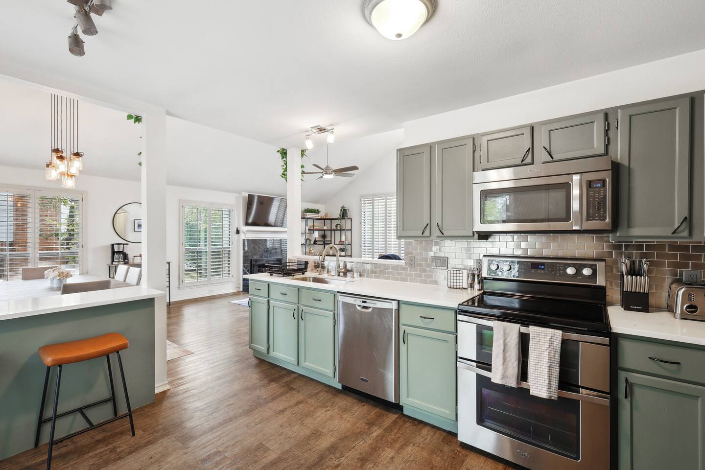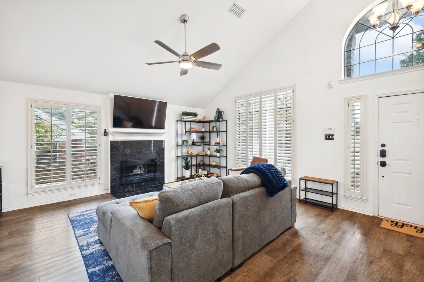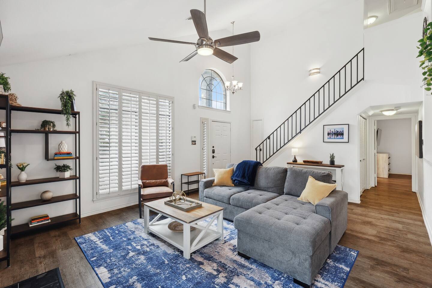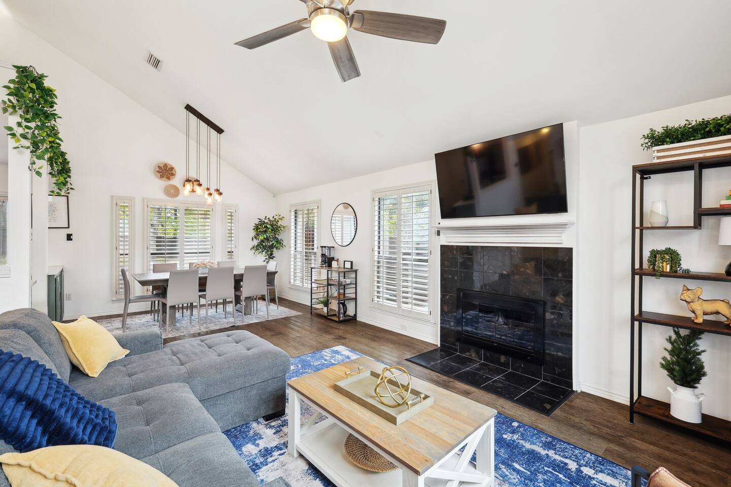 Nestled on an oversized, premium lot just minutes from White Rock Lake, this remodeled, contemporary designed home offers the perfect blend of modern elegance and comfort. Established neighborhood, mature trees, and OUTSTANDING location - minutes to the Dallas Arboretum, walking+biking trails, Lakewood, local shops & dining. Inside, abundant natural light floods the open floorplan through large windows with plantation shutters, highlighting the 20' vaulted ceiling, custom wrought iron staircase, and wood floors. The well-appointed kitchen features custom cabinetry, white quartz countertops, a stainless steel backsplash & appliances, a custom breakfast nook, and a dry bar. Additional upgrades include flooring, fresh neutral paint, & updated designer lighting. Retreat to the privacy of the master bedroom with en-suite bath & walk-in closet. Step out onto a large, shaded deck to an expansive, fully-fenced backyard, perfect for entertaining! Zoned to the award-winning Hexter Elementary. Master bedroom is equipped with a comfortable King bed and has an updated master bath. Master is located on first floor. Equipped with 55" smart TV 2nd floor consists of an office with a sleeper couch as well as the other 2 bedrooms. One bedroom has a queen bed and the other has a twin over twin bunked and a separate full bed, both rooms equipped with smart TVs The living room has high ceilings and a smart 60" TV as well as a large sleeper sofa. Full kitchen with all the essentials. Dining room for up to 8.