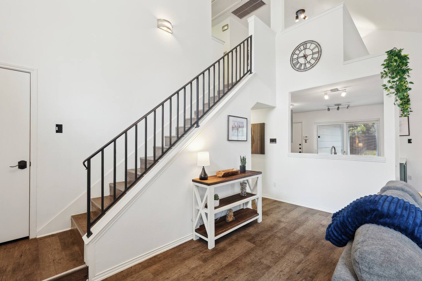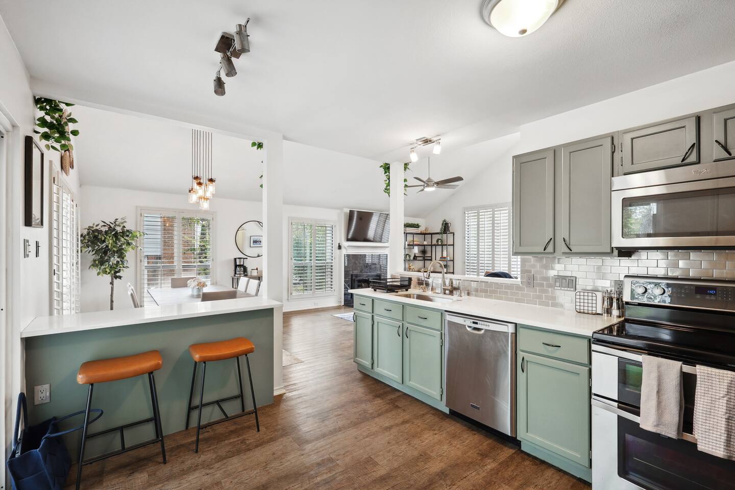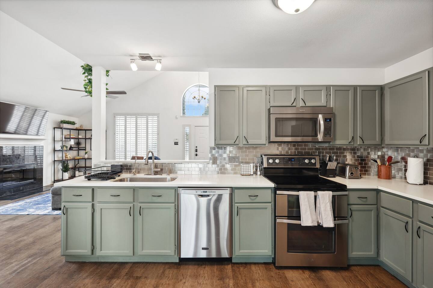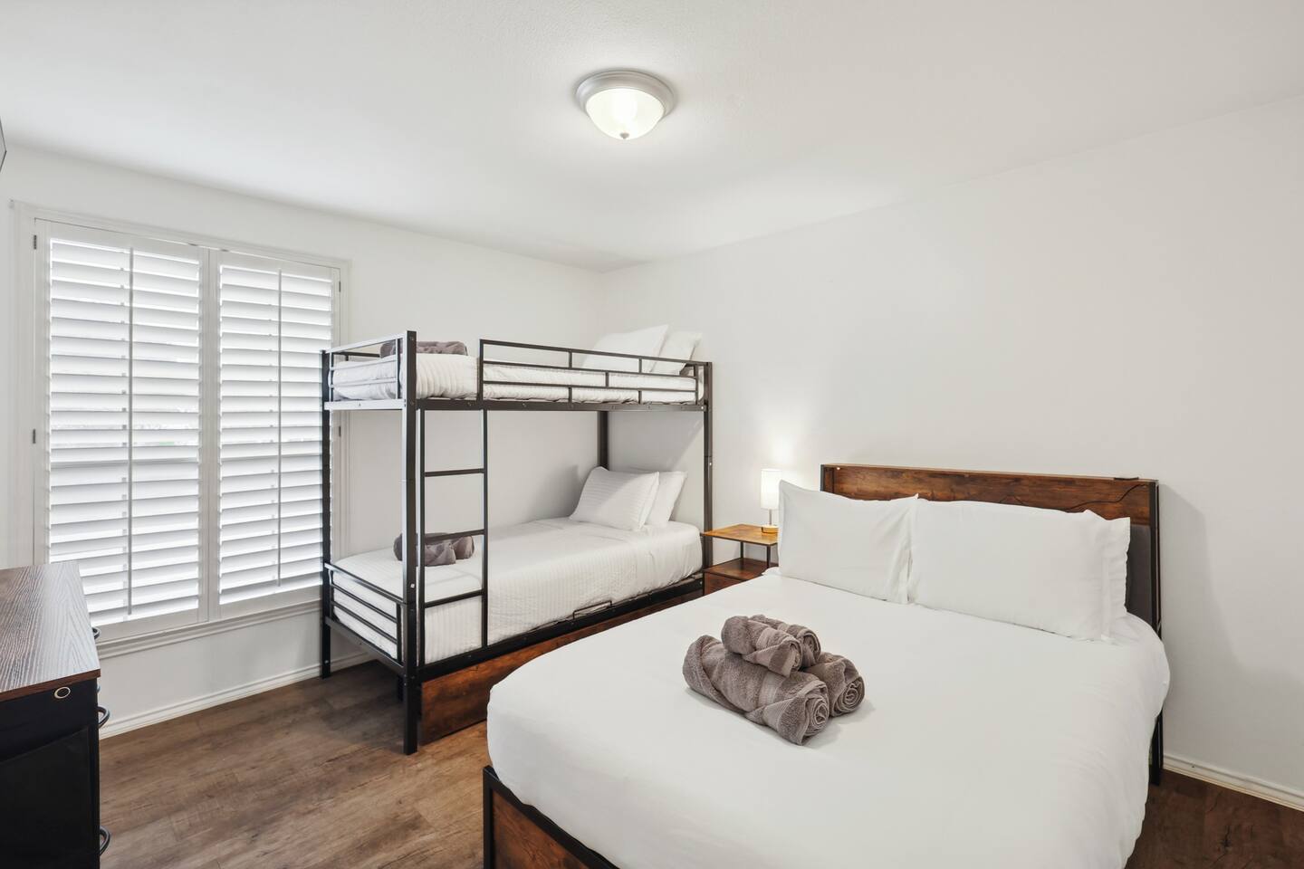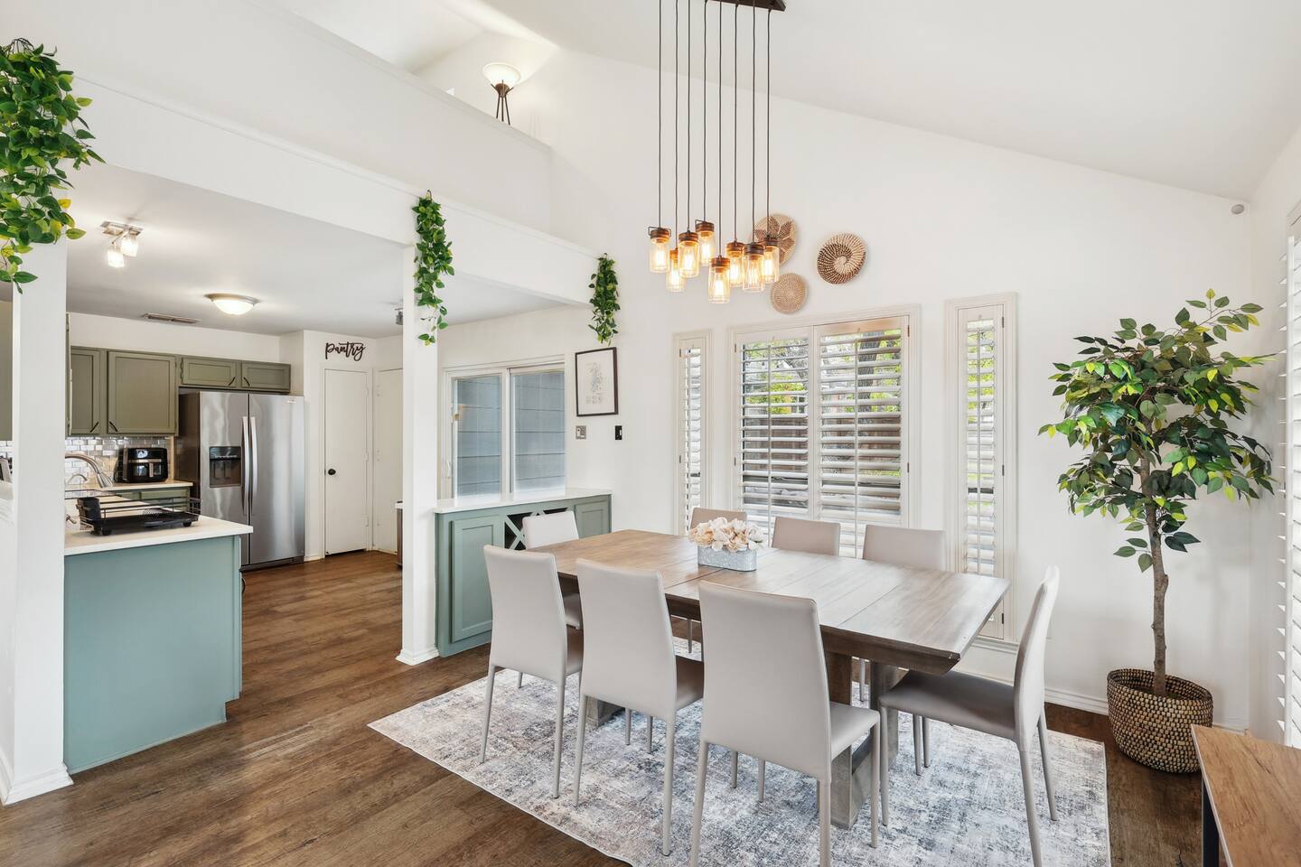 Nestled on an oversized, premium lot just minutes from White Rock Lake, this remodeled, contemporary designed home offers the perfect blend of modern elegance and comfort. Established neighborhood, mature trees, and OUTSTANDING location - minutes to the Dallas Arboretum, walking+biking trails, Lakewood, local shops & dining. Inside, abundant natural light floods the open floorplan through large windows with plantation shutters, highlighting the 20' vaulted ceiling, custom wrought iron staircase, and wood floors. The well-appointed kitchen features custom cabinetry, white quartz countertops, a stainless steel backsplash & appliances, a custom breakfast nook, and a dry bar. Additional upgrades include flooring, fresh neutral paint, & updated designer lighting. Retreat to the privacy of the master bedroom with en-suite bath & walk-in closet. Step out onto a large, shaded deck to an expansive, fully-fenced backyard, perfect for entertaining! Zoned to the award-winning Hexter Elementary. Master bedroom is equipped with a comfortable King bed and has an updated master bath. Master is located on first floor. Equipped with 55" smart TV 2nd floor consists of an office with a sleeper couch as well as the other 2 bedrooms. One bedroom has a queen bed and the other has a twin over twin bunked and a separate full bed, both rooms equipped with smart TVs The living room has high ceilings and a smart 60" TV as well as a large sleeper sofa. Full kitchen with all the essentials. Dining room for up to 8.