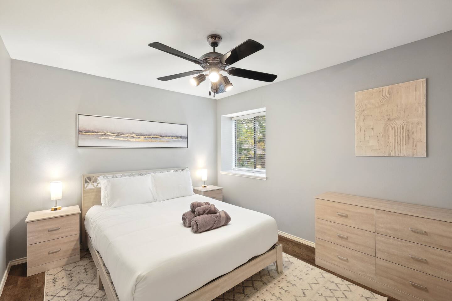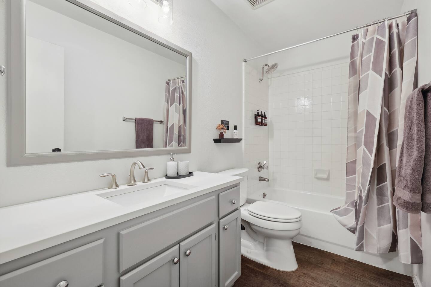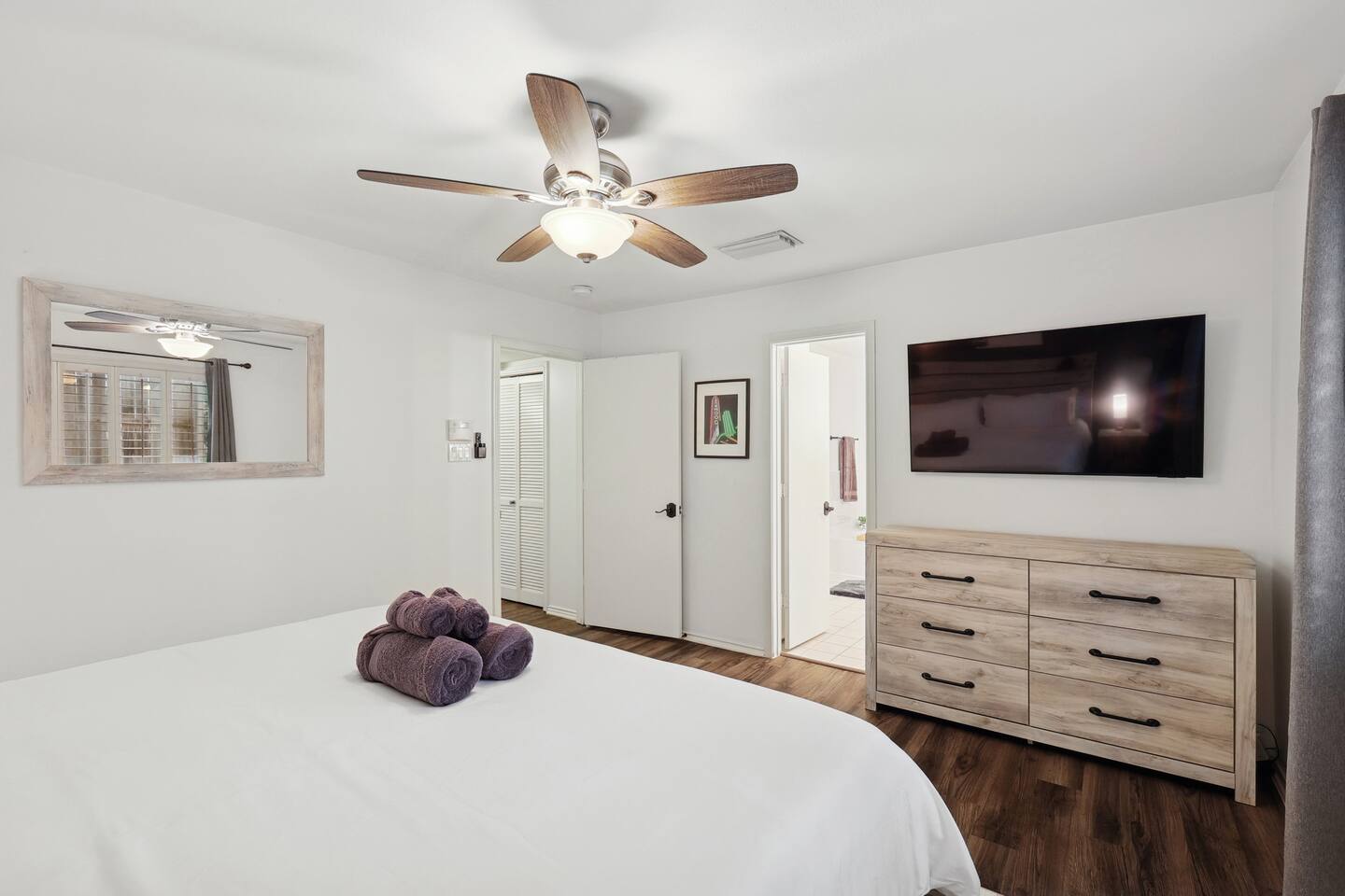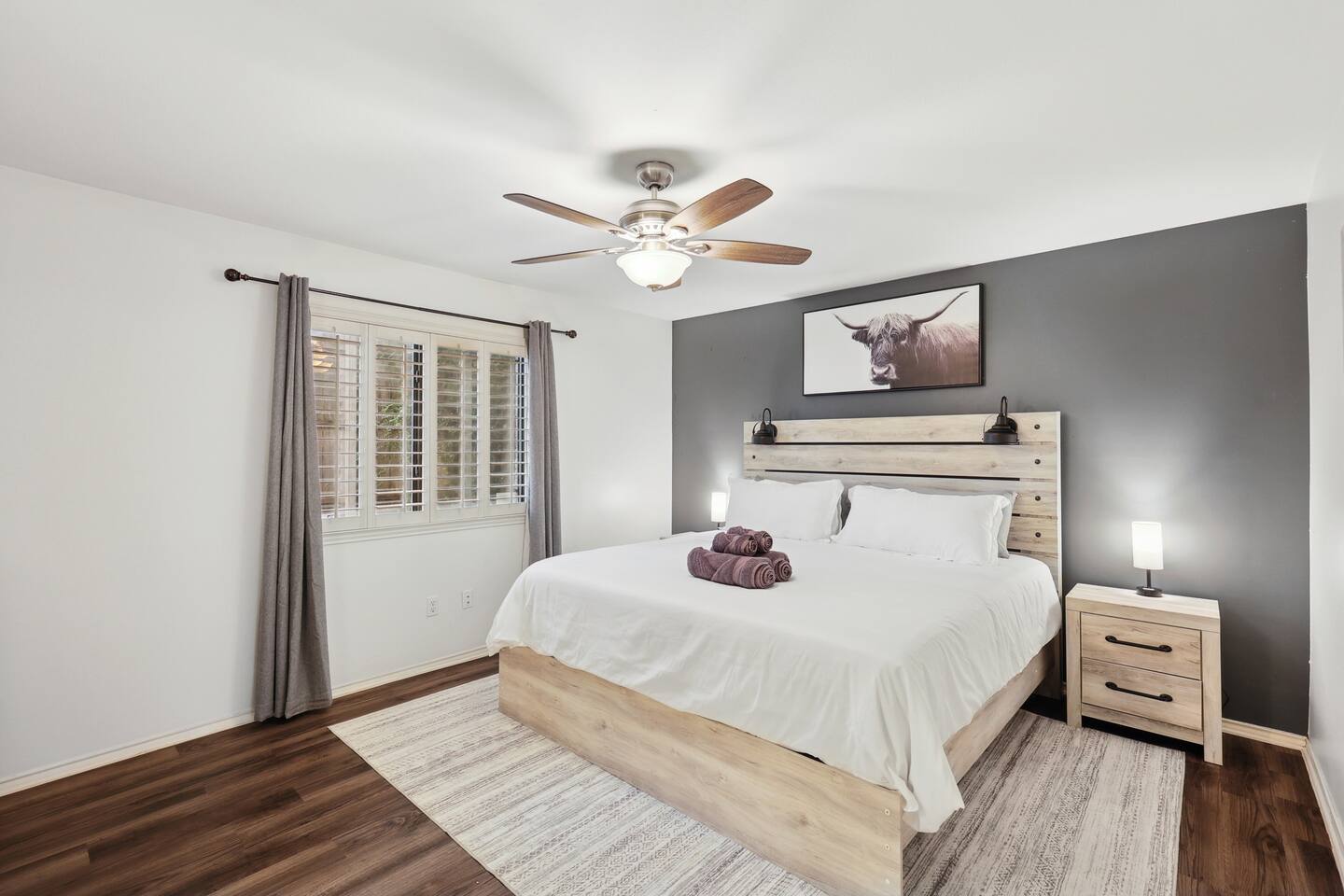 Nestled on an oversized, premium lot just minutes from White Rock Lake, this remodeled, contemporary designed home offers the perfect blend of modern elegance and comfort. Established neighborhood, mature trees, and OUTSTANDING location - minutes to the Dallas Arboretum, walking+biking trails, Lakewood, local shops & dining. Inside, abundant natural light floods the open floorplan through large windows with plantation shutters, highlighting the 20' vaulted ceiling, custom wrought iron staircase, and wood floors. The well-appointed kitchen features custom cabinetry, white quartz countertops, a stainless steel backsplash & appliances, a custom breakfast nook, and a dry bar. Additional upgrades include flooring, fresh neutral paint, & updated designer lighting. Retreat to the privacy of the master bedroom with en-suite bath & walk-in closet. Step out onto a large, shaded deck to an expansive, fully-fenced backyard, perfect for entertaining! Zoned to the award-winning Hexter Elementary. Master bedroom is equipped with a comfortable King bed and has an updated master bath. Master is located on first floor. Equipped with 55" smart TV 2nd floor consists of an office with a sleeper couch as well as the other 2 bedrooms. One bedroom has a queen bed and the other has a twin over twin bunked and a separate full bed, both rooms equipped with smart TVs The living room has high ceilings and a smart 60" TV as well as a large sleeper sofa. Full kitchen with all the essentials. Dining room for up to 8.